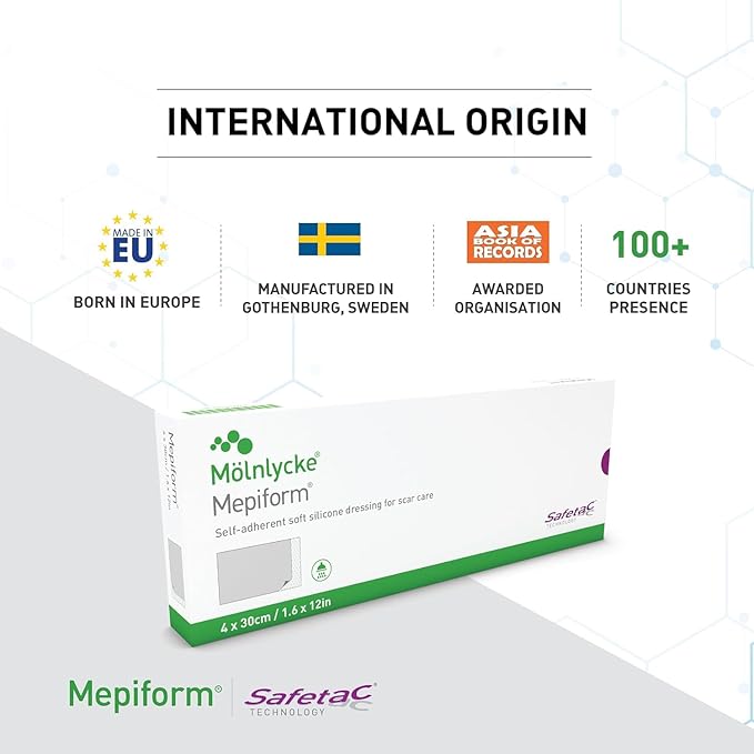 Mepiform er en selvklæbende, tynd, diskret og fleksibel bandage. Bandagen har et Safetac-kontaktlag, som er en unik klæbeteknologi. Det minimerer smerter hos patienterne og traume på huden ved bandageskift.