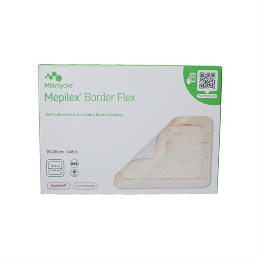 Mepilex Border Flex er en alt-i-én silikone skumbandage, der effektivt absorberer og holder på sårvæske (ekssudat), men samtidig holder såret tilstrækkelig fugtigt.