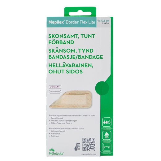 Mepilex Border Flex Lite er en selvklæbende skumbandage med blød silikone.