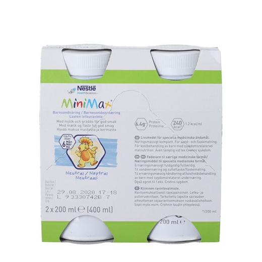MiniMax kan gives i sutteflaske som ernæringsdrik eller via sonde.