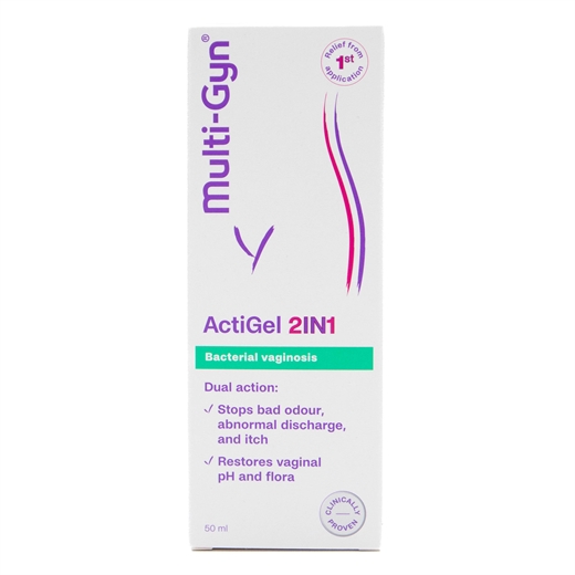 Multi-Gyn ActiGel 2in1 er et dobbeltvirkende produkt, der er klinisk bevist til at behandle bakteriel vaginose og designet til at genoprette pH-niveauet for en sund vaginal flora. Det lindrer og fjerner gener som tyndt gråligt udflåd, fiskelugt, kløe, irritationer, følsomhed, rødme og ømhed.