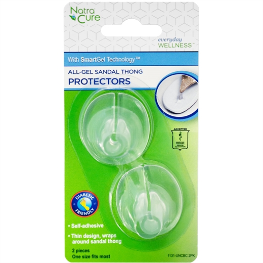 NatraCure® Gelbeskytter til sandaler er specifikt designet til at passe rundt om tåremmen i sandaler. Hjælper med at reducere friktion og irritation mellem tæerne med meget blød, behagelig polyuretan-gel. Selvklæbende design holder produktet på plads. Gennemsigtig for at matche alle sko. Anbefales til højhælede sandaler. Støtter og beskytter. Absorberer tryk og friktion. Dermatologisk testet. Hypoallergen.