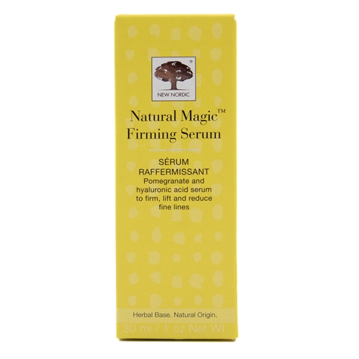 New Nordic Natural Magic Firming Serum indeholder granatæble og hyaluronsyre der genopbygger og gør huden mere fast og reducerer fine linjer og dermed modvirkes hudens ældningstegn. Har en løftende effekt der efterlader huden blød, spændstig og gennemfugtet.