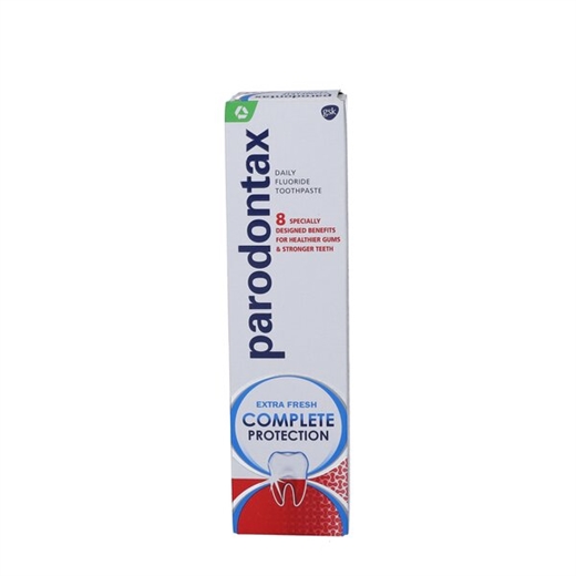 Parodontax Complete Protection Tandpasta til beskyttelse af tænder og tandkød.