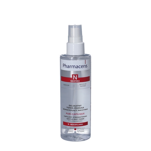 Pharmaceris N Puri-Capilique er en ansigtstonic specielt egnet til hud med sprængte blodkar (hyperaktivitet i hudens blodkar)  samt hyppig rødme.