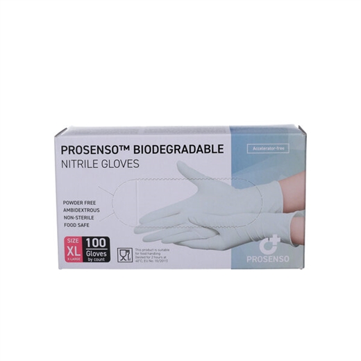 Prosenso Biodegradable Nitrilhandsker er bionedbrydelige nitrilhandsker.
