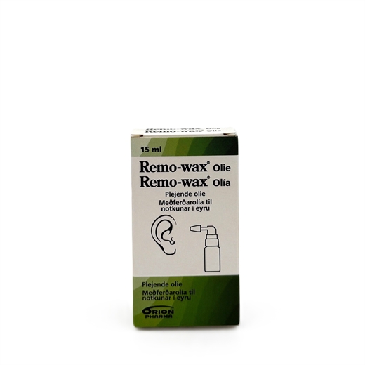 Spray 1-2 doser Remo-wax Olie i øregangen én gang om ugen eller efter behov.