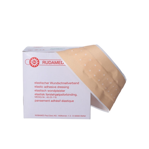 Rudamed elastisk lærredsplaster er et tværelatisk førstehjælpsplaster med kompres.