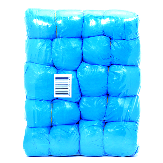Skoovertrækkene er fremstillet i blåt polyethylenplast.