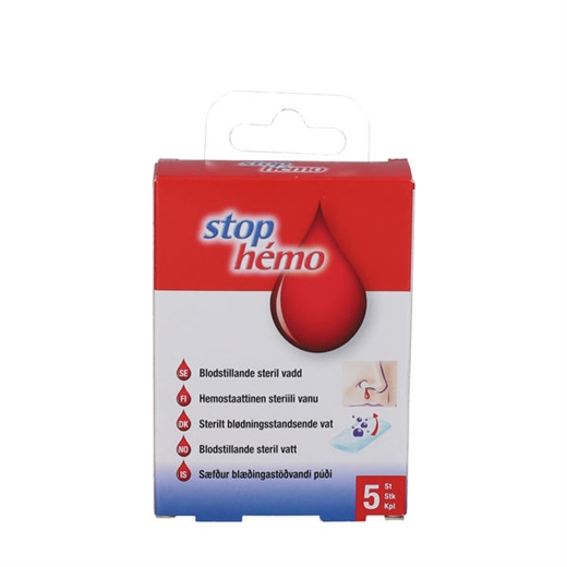 Stop Hémo er sterilt, blødningsstoppende vat, som næsten øjeblikkeligt stopper blødninger, uanset om det gælder næseblod, skrabesår eller skæresår.