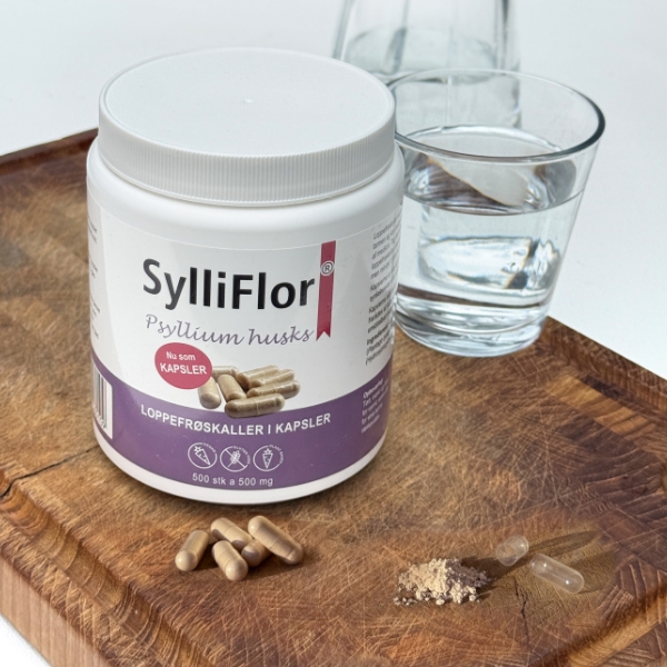 SylliFlor Kapsler er et fiberrigt kosttilskud, der er baseret på loppefrøskaller.