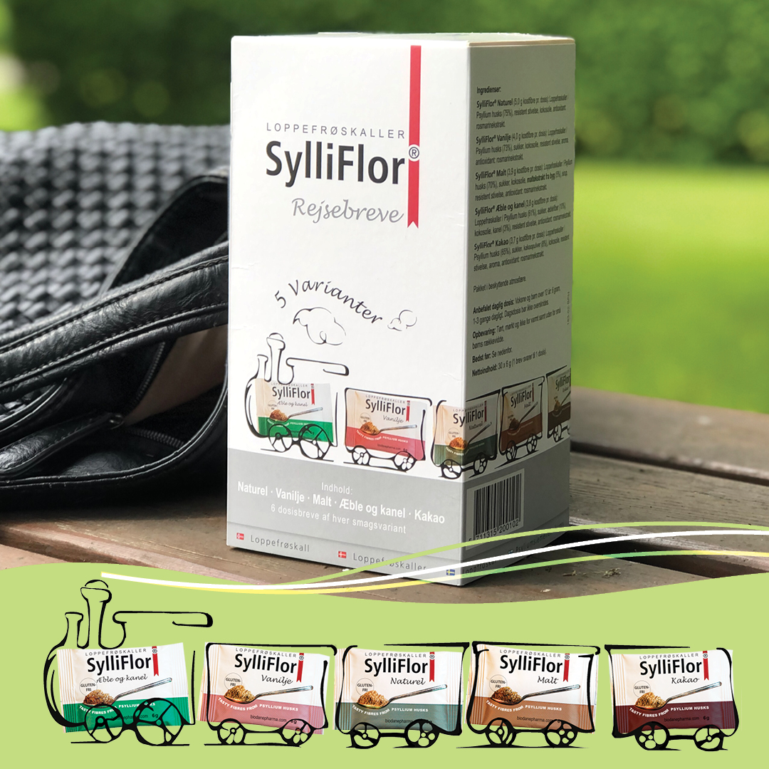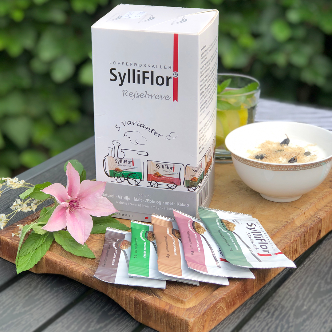 Sylliflor Rejsebreve i æske med 6 x 5 stk. dosisbreve Sylliflor loppefrøskaller.