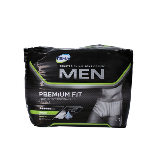 TENA Men Premium Fit Protective Underwear Level 4 (Maxi) er en hurtig absorberende mandeunderbuks i en maskulin og diskret stil.
