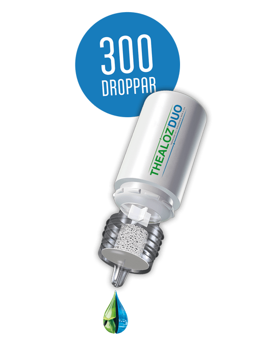 Thealoz Duo er en steril, hypotonisk og pH-neutral vandbaseret opløsning uden konserveringsmidler.