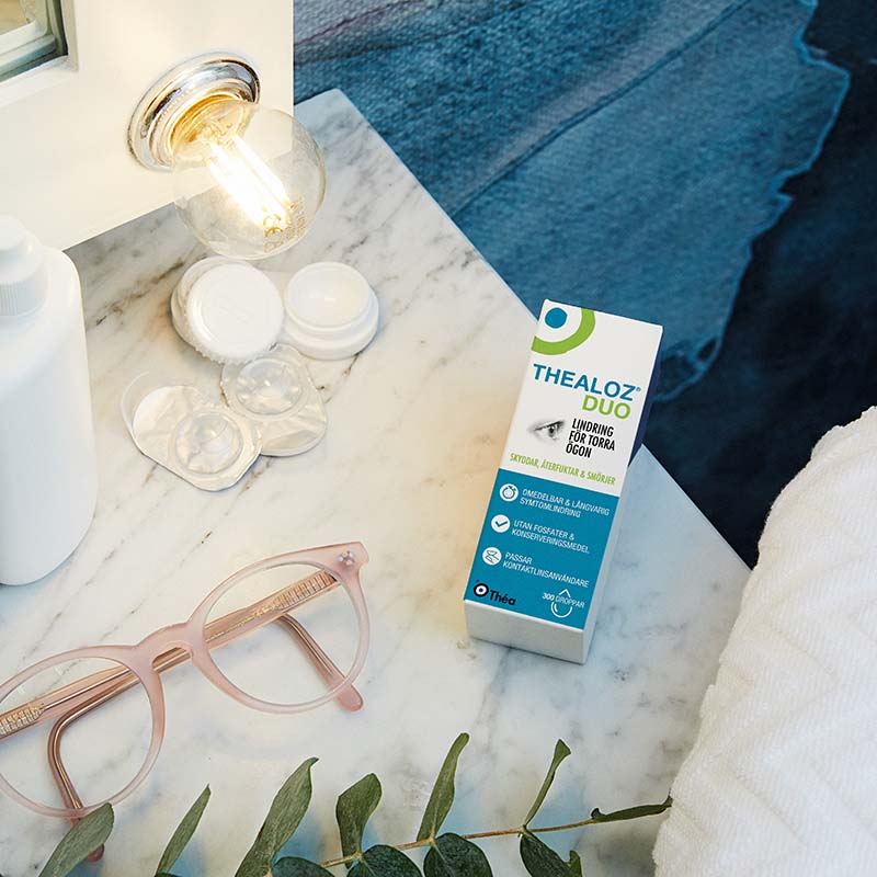 Thealoz Duo er fugtgivende, beskyttende og smørende øjendråber til brug ved moderat til alvorligt tørre øjne.