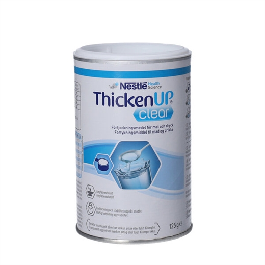 Nestlé ThickenUP Clear er et fortykningsmiddel i pulverform til mad og drikkevarer.
