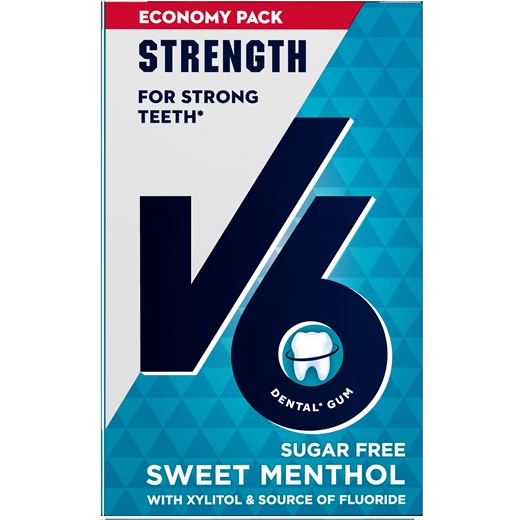 V6 Økopakke Sweet Menthol med fluor hjælper med at beskytte tænderne.