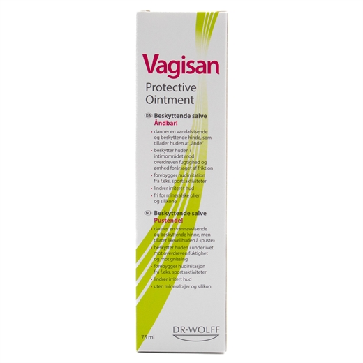 Vagisan Beskyttelsessalve er specielt udviklet til brug i det ydre kønsområde. Salven er særlig blød, let at smøre ud og klæber godt til huden. Takket være dens sammensætning, som omfatter hudvenlige olier og voks af vegetabilsk oprindelse, danner den en vandafvisende beskyttelsesfilm på huden og tillader stadig huden at “ånde”. Dette beskytter huden mod hudirriterende påvirkninger og dermed mod at blive øm i det ydre køns- og baldeområde uden at forårsage en ophobning af fugt. Vagisan Protective Ointment indeholder ingen mineralske fedtstoffer og ingen silikoner.