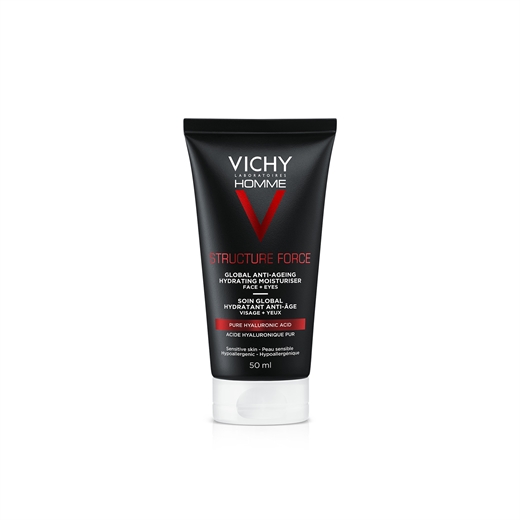 Vichy Homme Structure Force er en alt-i-én anti-age ansigtscreme til mænd.