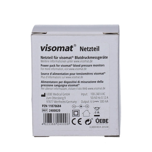 Visomat adaptor / strømforsyning 20/40 til brug sammen med Visomat blodtryksapparater.