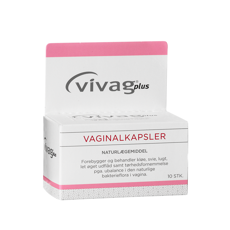 Vivag Plus vaginalkapsler er et naturlægemiddel med levende mælkesyrebakterier til forebyggelse og behandling af let udflåd, kløe, svie og tørhedsfornemmelse på grund af ubalance i den normale bakterieflora i skeden. Tilstanden kan vise sig som let øget udflåd, kløe og lugtgener.